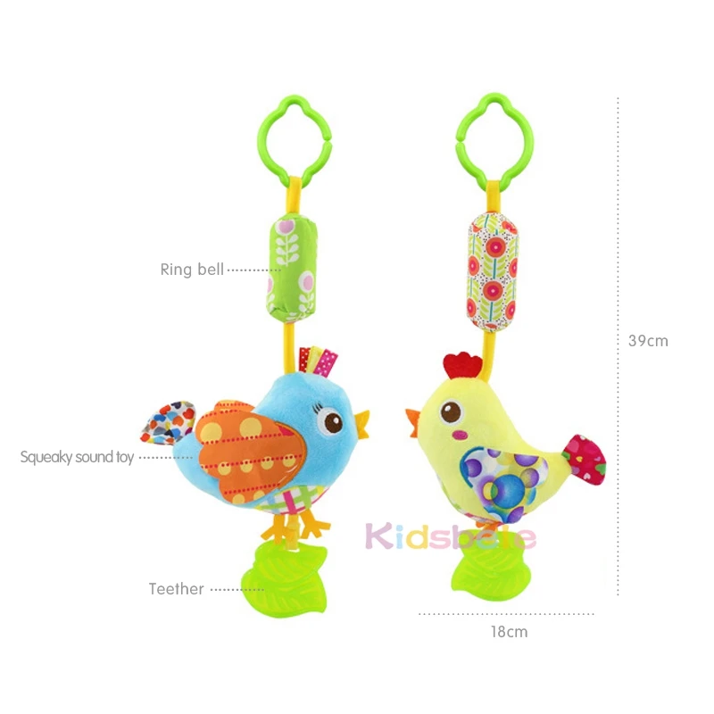 Package includes:baby hanging toy*1 This soft rattle toy is safety for newborn,it can hanging on everywhere for children play. Very cute design.With rustle/squeaky sound/bell ring functions. This toy is made of safe material and passed international quality certification. It is situable for baby toys 0-24 months.Mom and baby will have a happy bedtime.