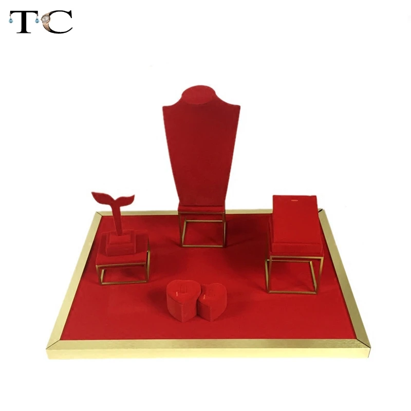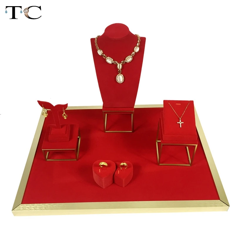 Ювелирные изделия из нержавеющей стали витрины красный бархат ожерелье кольцо держатель ювелирные изделия стенд черный бархат 52*38*36 см