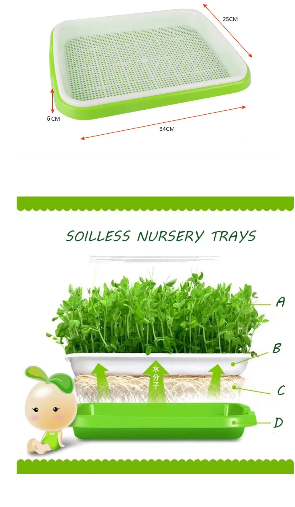 Подходит для большинства семян бобов, возьмите корни, даже фасоль mung не может протекать. Благодаря плотной сетке и неровному пространству фасоль может легко/быстрее выдвигать корни с высокой скоростью бутонирования.
