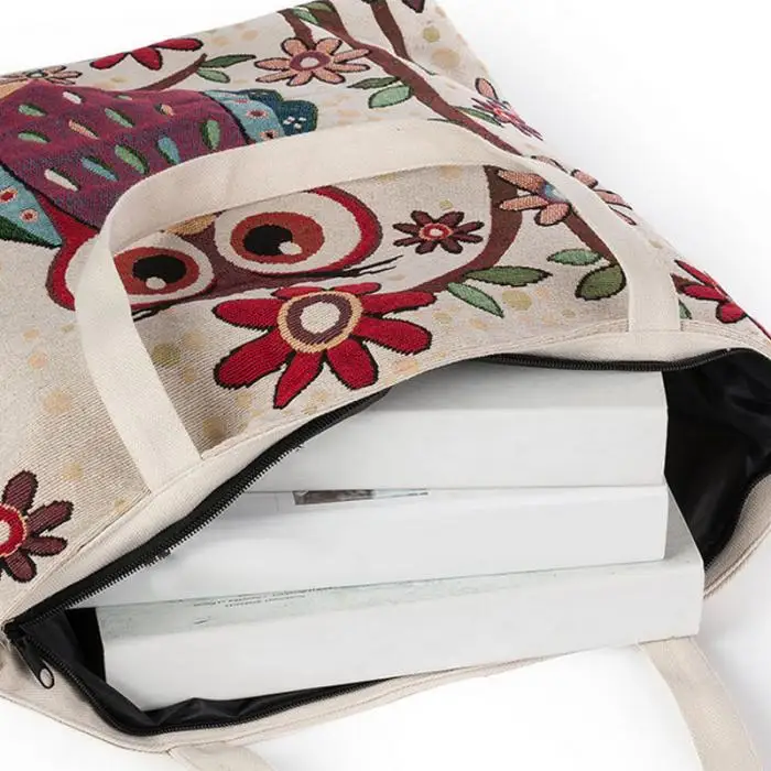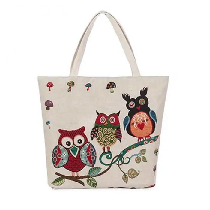 Тканевая милая сумка через плечо с цветочным принтом Совы из мультфильма ретро женские Сумки Большая вместительность сумки для покупок BS88