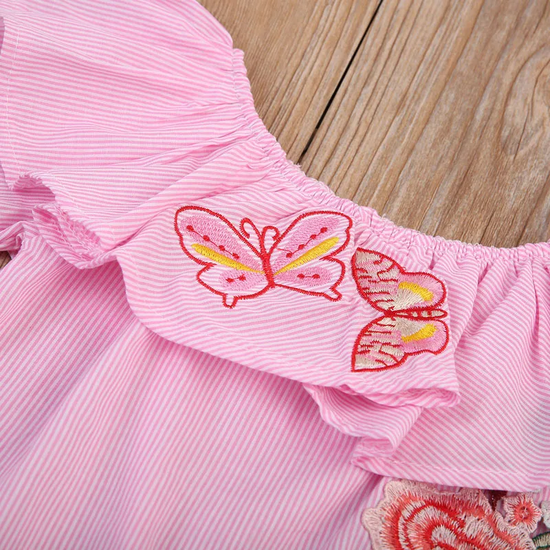 Платье с цветочной вышивкой и открытыми плечами для маленьких девочек! Высокое качество и абсолютно новый 100% Основной цвет: как на картинке Новинка в моде Материал:Смешанный хлопокОбратите внимание: если ваш ребенок пухленький, мы рекомендуем выбрать больший размер, спасибо.Просим перепроверять размеры детей, рост и полноту по размерной таблице перед покупкой/подачей заявки. Спасибо за понимание.Посылка включает в себя:1x платье