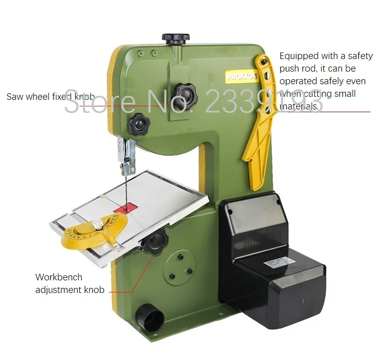 Особенности:1) затяните лезвие пилы для регулировки винта.2) затяжные винты для регулировки высоты направляющей пилы3) направляющая лента для пилы, крышка для пильного диска и Направляющее колесо.4) рабочий стол 200 мм × 200 мм, может быть наклонен при 45 °.5) соединение пылесоса помогает поддерживать чистоту рабочей среды.6) регулятор скорости для контроля скорости.7) обратитесь к значку и выберите соответствующую скорость в зависимости от различных ситуаций. Значение только для справки.