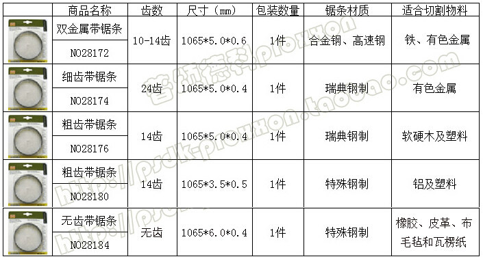 Специальная сталь, после закалки и закалки, используется для резки алюминия и пластмасс. Подходит для резки небольших радиусов.Грубая зубная ленточная пила: 14 зубьев на 25 ммНет 28180: 1065x3,5x0,5 мм (1 шт. в упаковке)