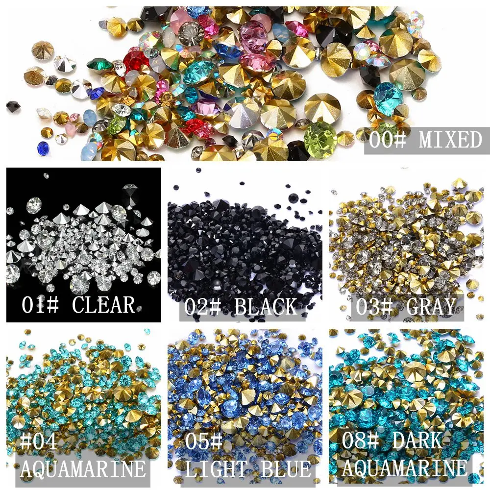 Wholesale Light Gold Resin Rhinestones PointBack Glue On Beads 2-8mm Diamond Jewelry Nail Art Wedding Dress Decoration DIY