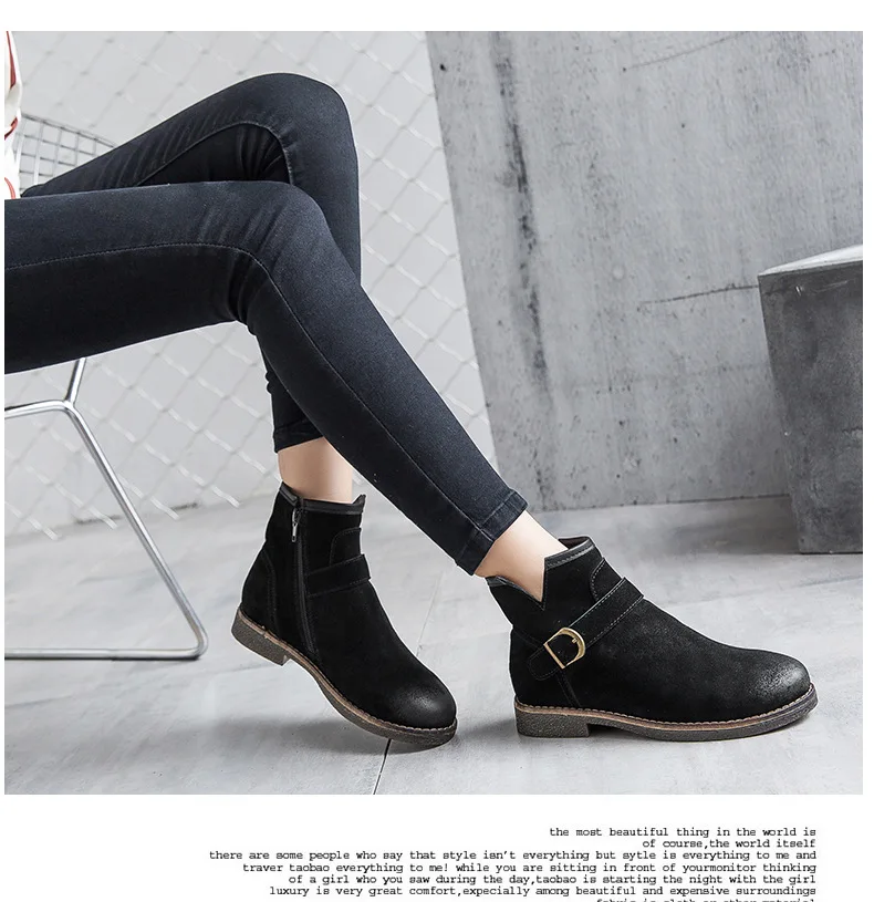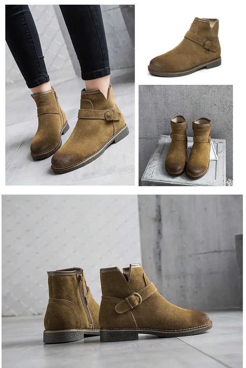 Женские ботильоны кожаные на низком каблуке 2017 Осень Сплит кожа квадратный каблук с круглым носом Мода ретро короткие сапоги женские адриамале