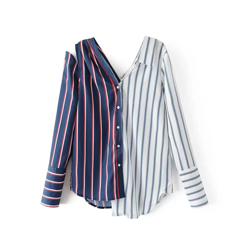 2017 новая летняя женская модная универсальная рубашка в полоску Fan Bingbing Ma Sichun с асимметричным вырезом без бретелек