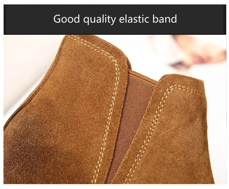 Разделение кожаные ботильоны для Для женщин Новинка 2017 года осень британский стиль Эластичная лента круглый носок Модные женские полуботинки каблук Nysiani