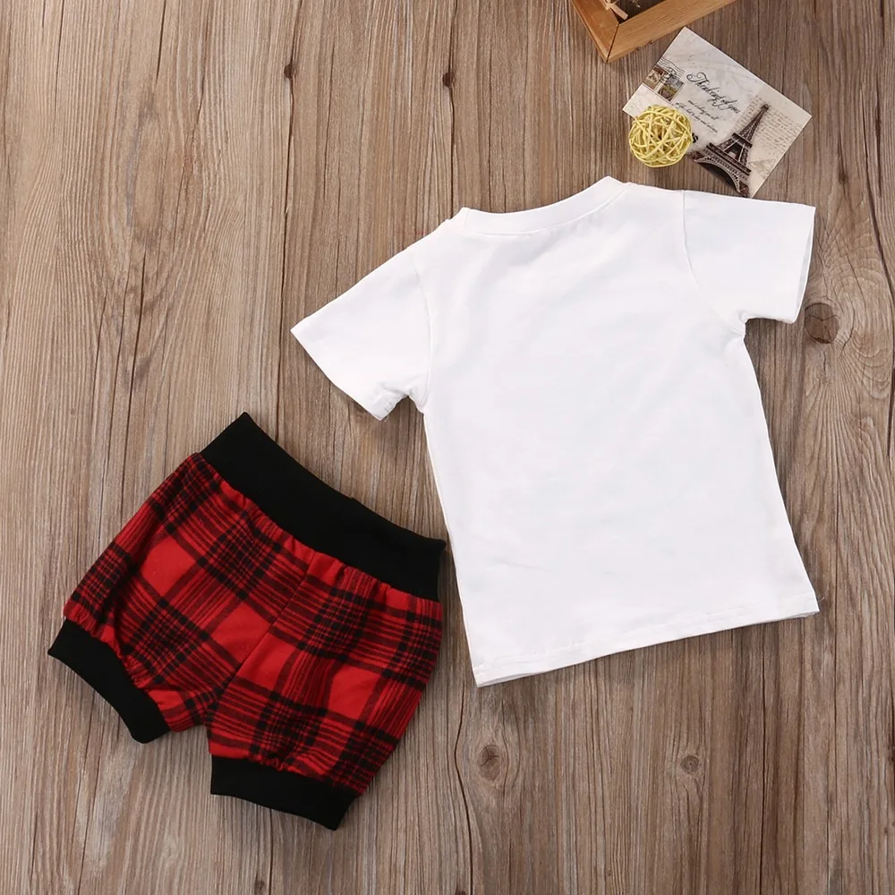 Новейшая модная детская одежда! Высокое качество и абсолютно новый 100% Pudcoco/2017 г. Черная футболка с рисунком для новорожденных мальчиков и девочек от 0 до 18 месяцев + красные клетчатые штаны детская одежда летний костюм, комплект из 2 предметов