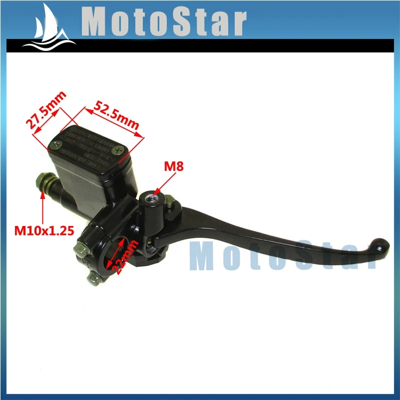 Item DescriptionFitment:Specification:Fit 7/8" HandlebarRear View Mirror Hole: 8mmPiston Bore Diameter: 12.7mmBanjo Bolt :10x1.25 mmRight Front Brake Master Cylinder For GY6 50cc 125cc 150cc 250cc Scooter Moped ATV Quad.Front Right Brake Master Cylinder For 50cc 70cc 90cc 110cc 125cc ATV Quad Pit Dirt Bike Motorcycle Motocross.Condition:100% New With Very Good Condition.Color:The Same Color To The Lisitng.Package:Safety Package.Quantity:1pc.
