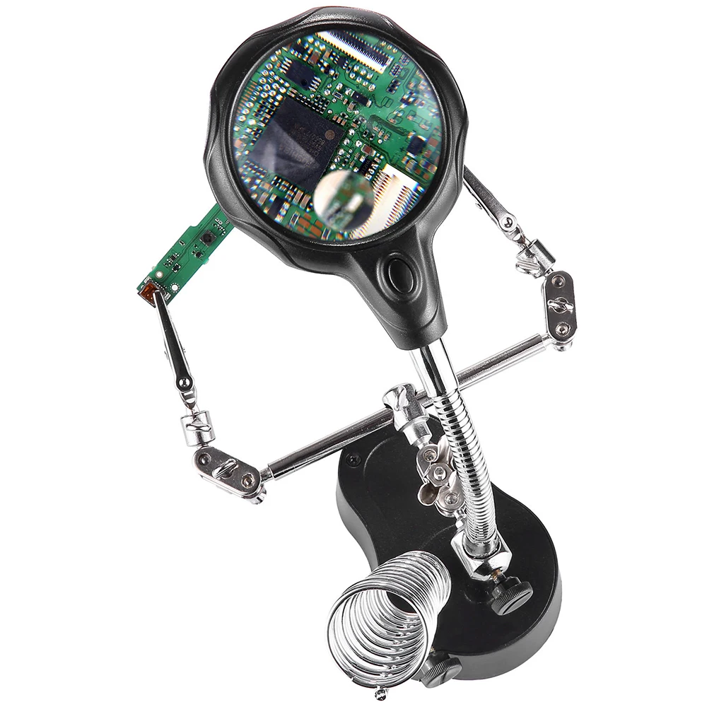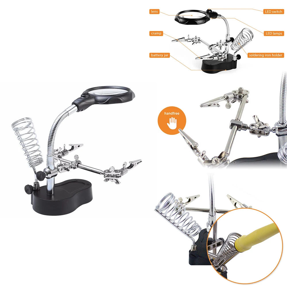 Настольный 3,5x 12X Аллигатор клип светодиодный увеличительный светильник паяльник Подставка для ювелирных изделий объектив Настольный регулируемый светильник