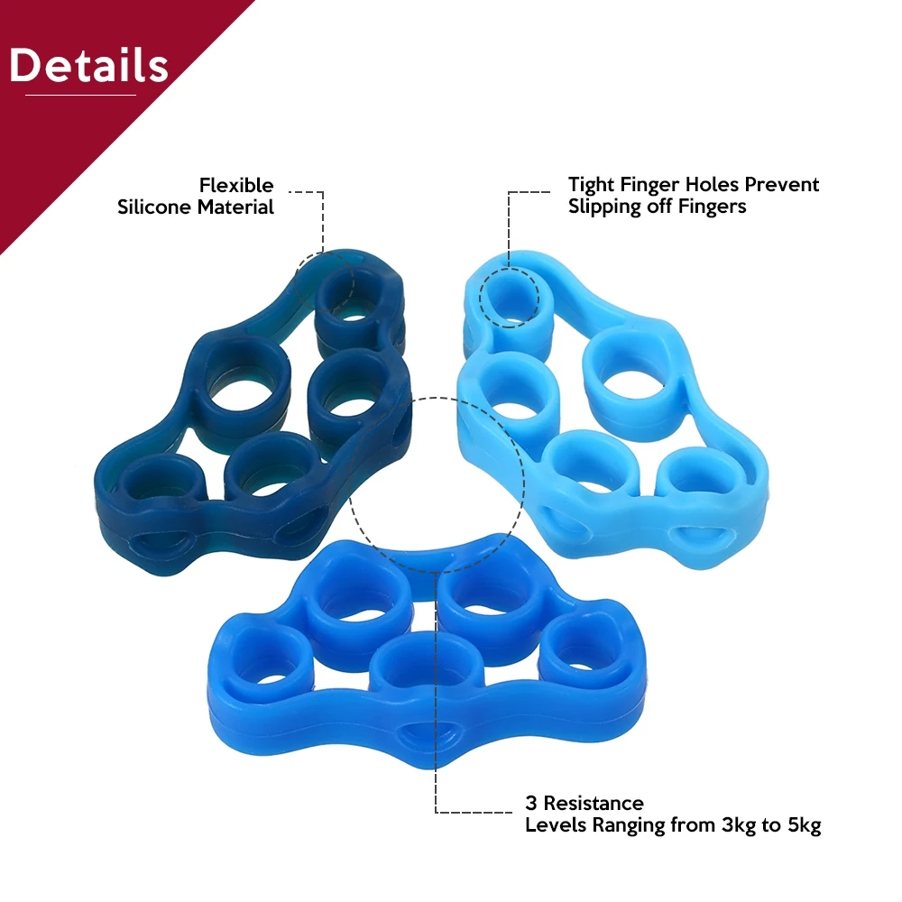 Набор из 6 ручных усилителей включает в себя три цветных носилки для пальцев и кольца для ручного захвата.
