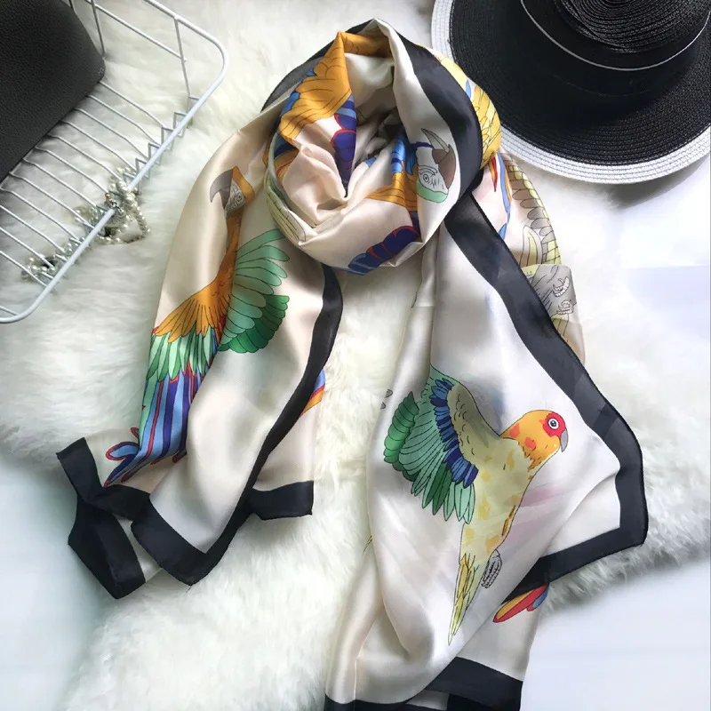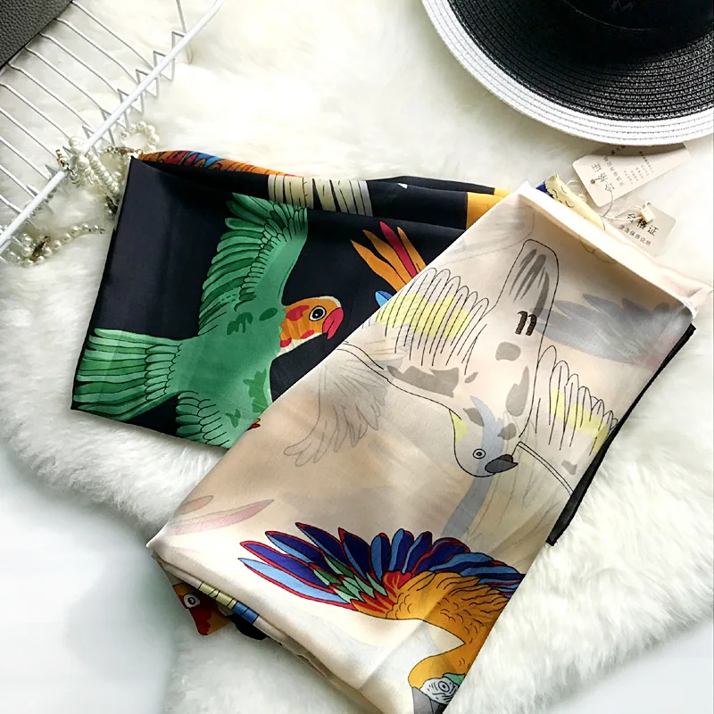 Женский шифоновый шелковый шарф Luna & Dolphin 180x90 см, шали с принтом попугая, светильник, розовые черные шарфы, шифоновая мягкая большая шаль, палантин, бандана