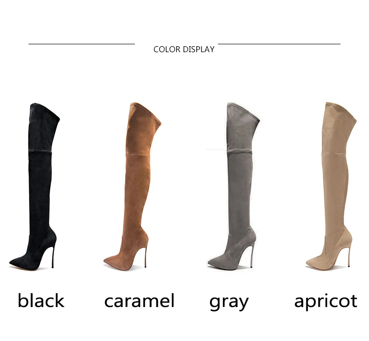 Осенне-зимние сапоги женская обувь выше колена на шпильке длинные с острым