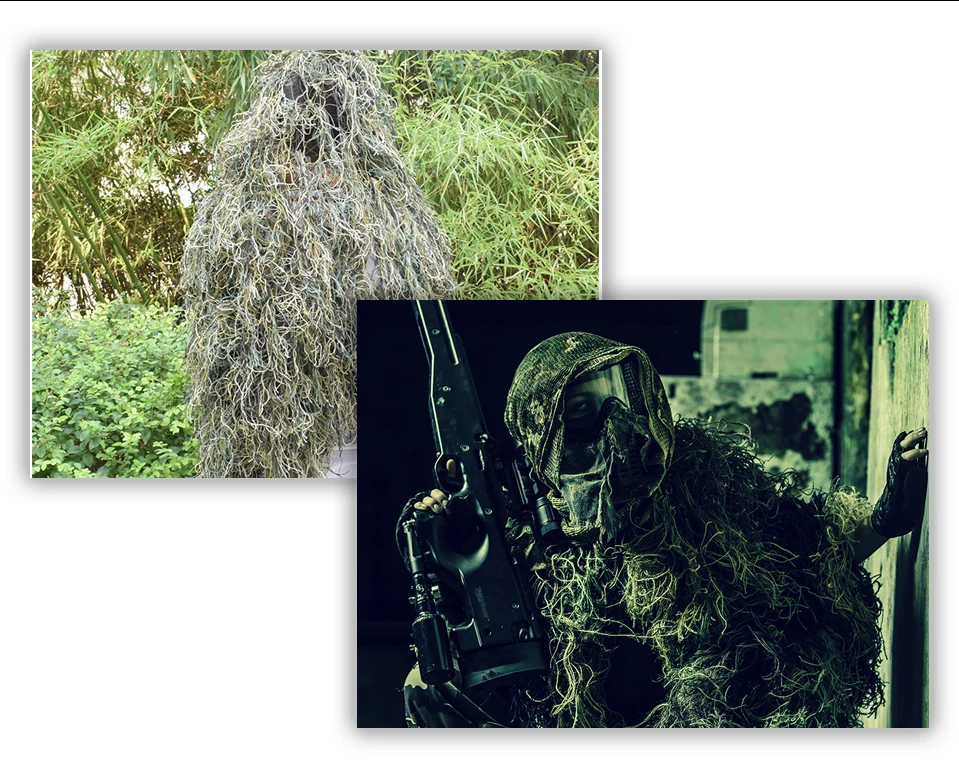 Ghillie костюм пустыня прочная дышащая сетчатая подкладка охотничий камуфляж снайперский костюм Скаутинг лесной Снайпер набор комплектов