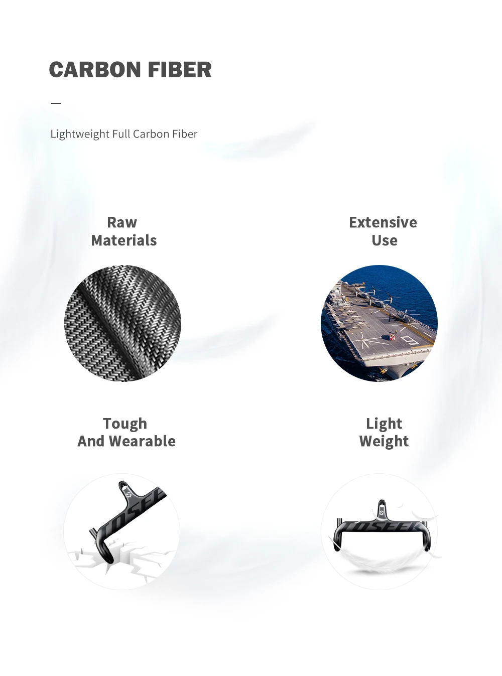 Черный матовый руль Ullicyc из углеродного волокна изогнутый Стержень 31 8*400/420 мм