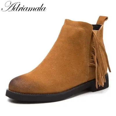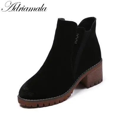2017 остроносый носок толстые каблуки ботильоны для женщин осень зима коровья кожа модные высокие каблуки короткие сапоги туфли adriamala