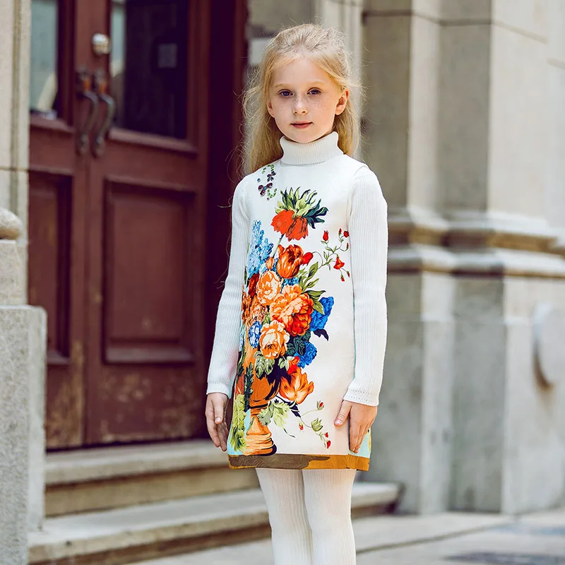 W.L.MONSOON Baby Girls Party Dresses Christmas Clothes 2021 Brand Winter Children Dresses for Girls Flower Vestidos Kids Dress