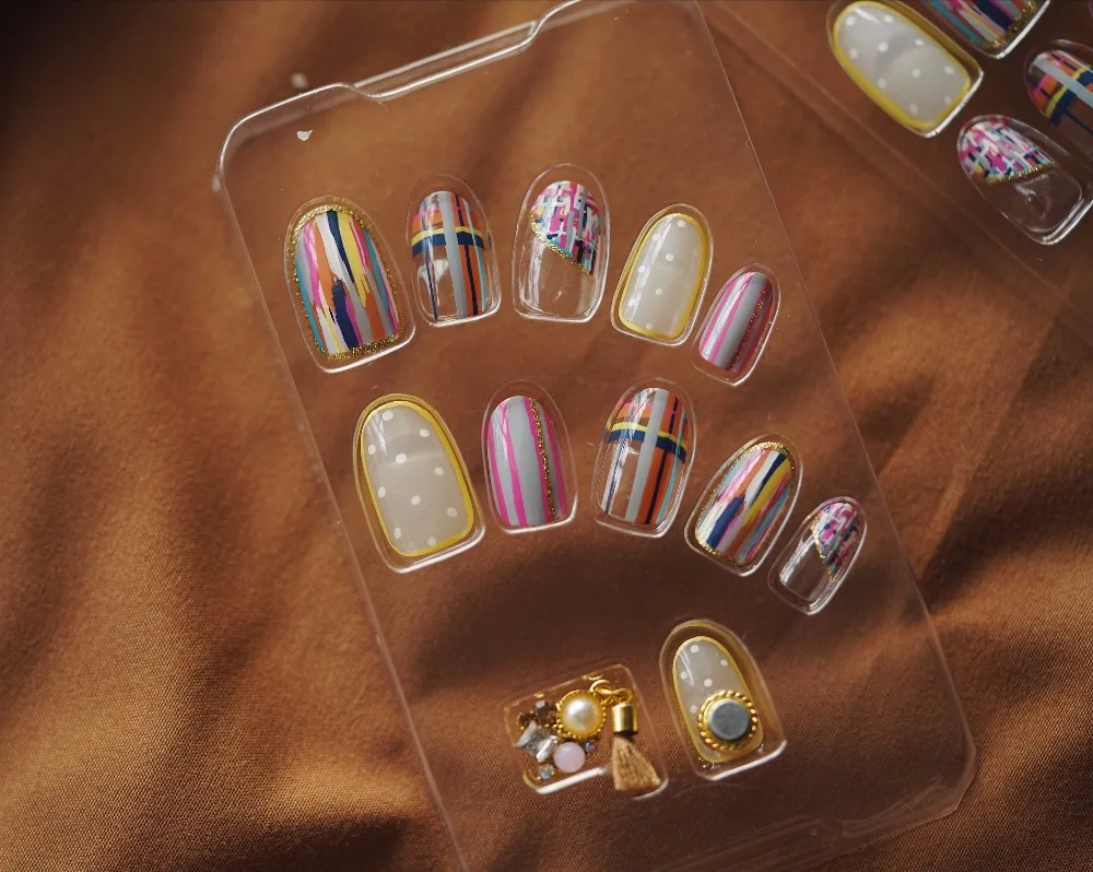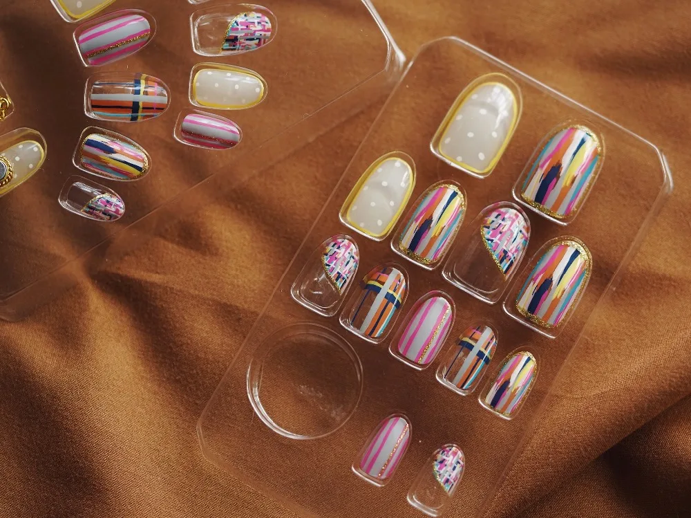 Наклейка на искусственные ногти ручной работы с клеем для женщин красный цвет