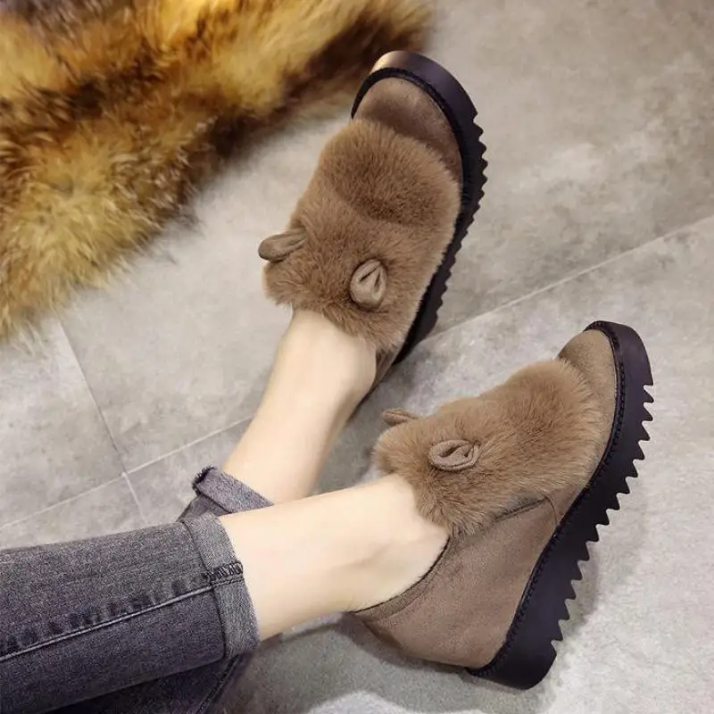 Женские ботинки Maomao зимние на толстой подошве из грубой замши с кроличьими