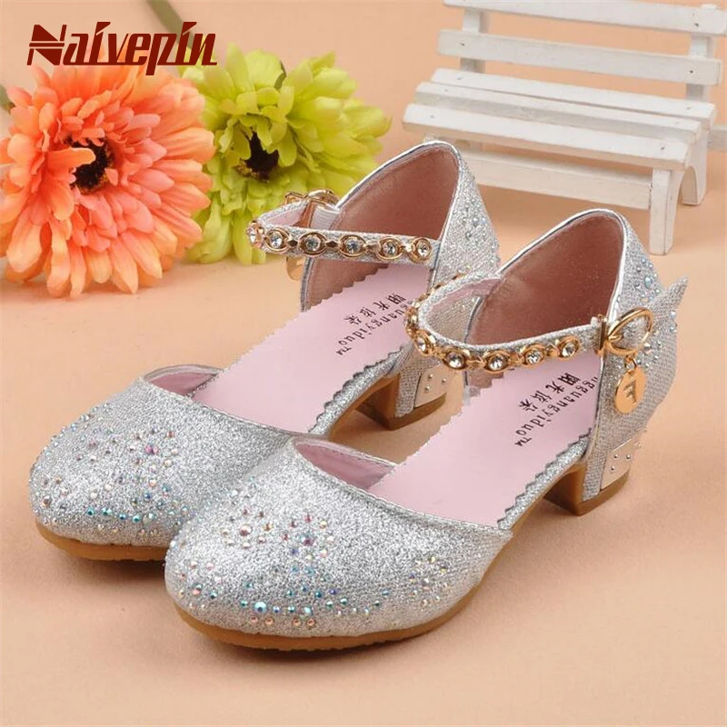 Девочки сандалии 2017 высокие каблуки Детская мода обувь принцесса кожа Лето Эльзы обувь Chaussure Enfants FILLE sandalias NinaНам $15.98 /Шт
