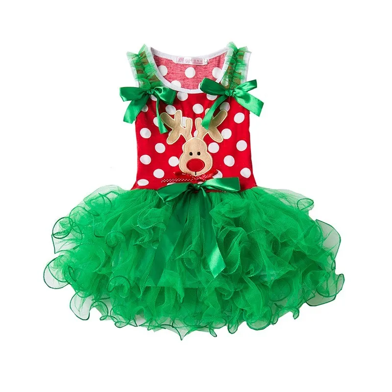 Осенне-зимние платья с рисунком рождественского оленя для девочек, газовая юбка, платье принцессы, детская одеждаUS $11,40