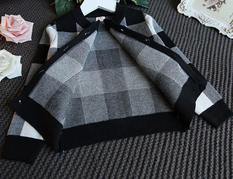 Осенне-зимняя одежда для маленьких девочек, теплые комплекты одежды для маленьких девочек, винтажное черно-белое клетчатое пальто + юбка, комплект из 2 предметов, повседневный Детский костюм для 2-8 лет