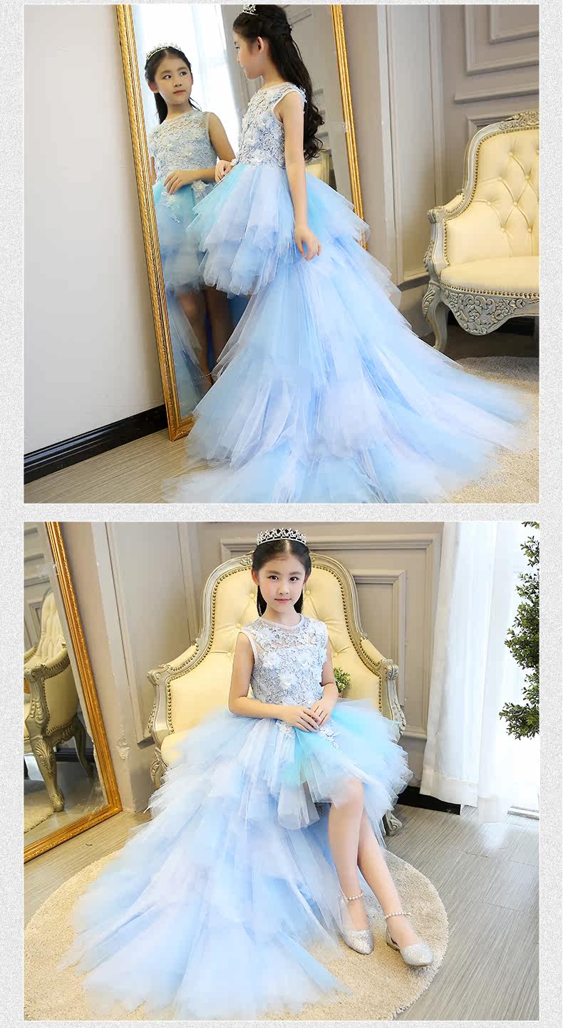 Children baby flower girl formal evening tail dress ball gowns prom wedding bridesmaid kid clothes beautiful princess party