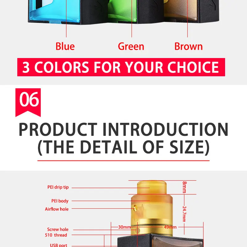 С защитой чипа и светодиодными индикаторами разных цветов, мод Raptor squonk box может поддерживать Супер Низкое сопротивление 0,05ом. между тем, он может поместиться в 18650, 20700, 21700 трех различных типов высокодренажных батарей и обеспечить безопасное парение с мощной прошивкой.
