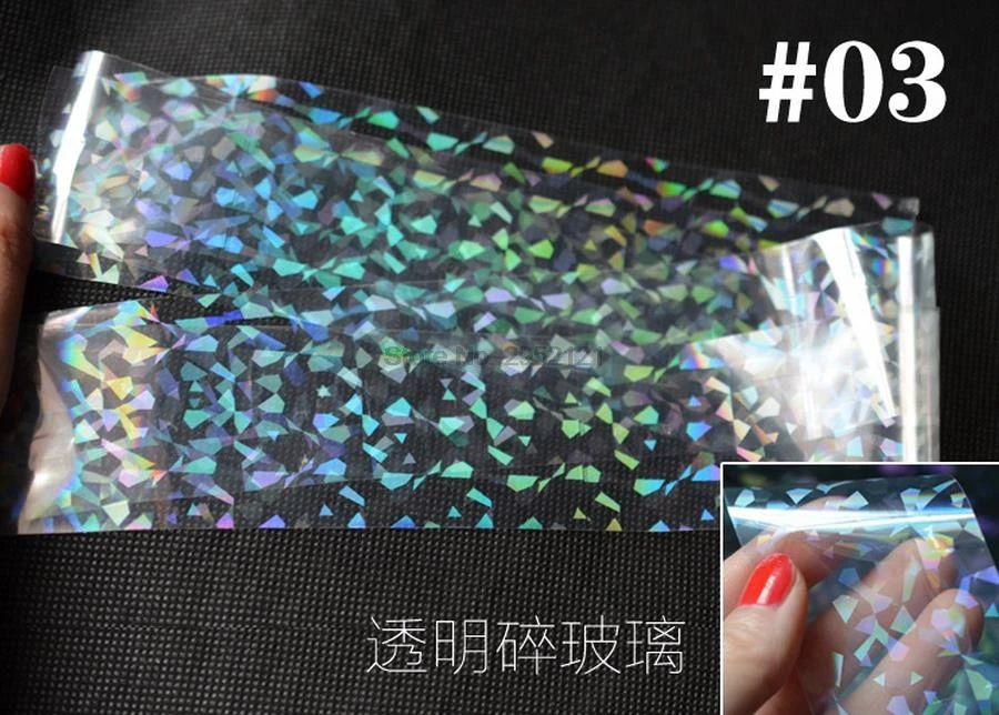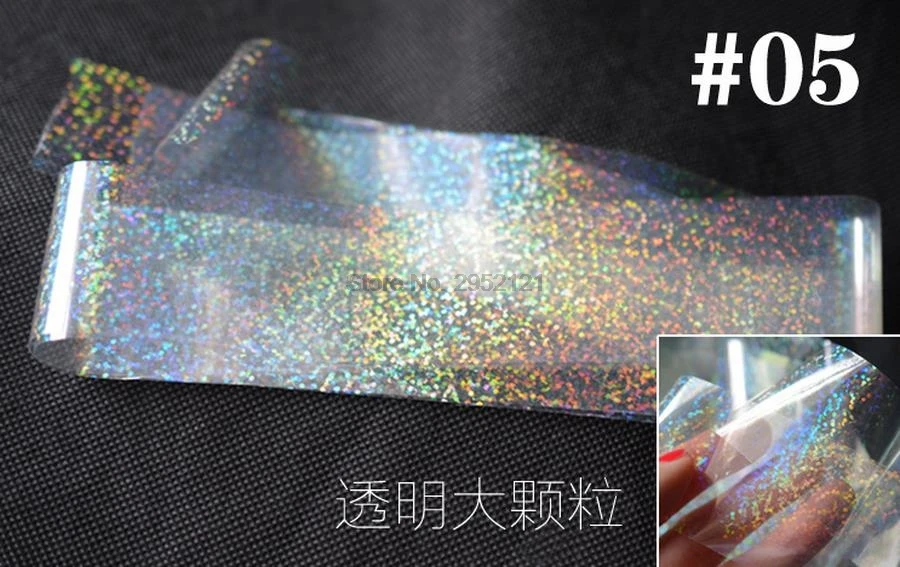Size: 4cm(width) x 120cm(width) each piece Using Guide: Cut the foil into small pieces; apply the nail polish, before it is dry apply the foils;Remove it quickly leaving the design on the nail; apply one top coat to protect it and for a better looking.