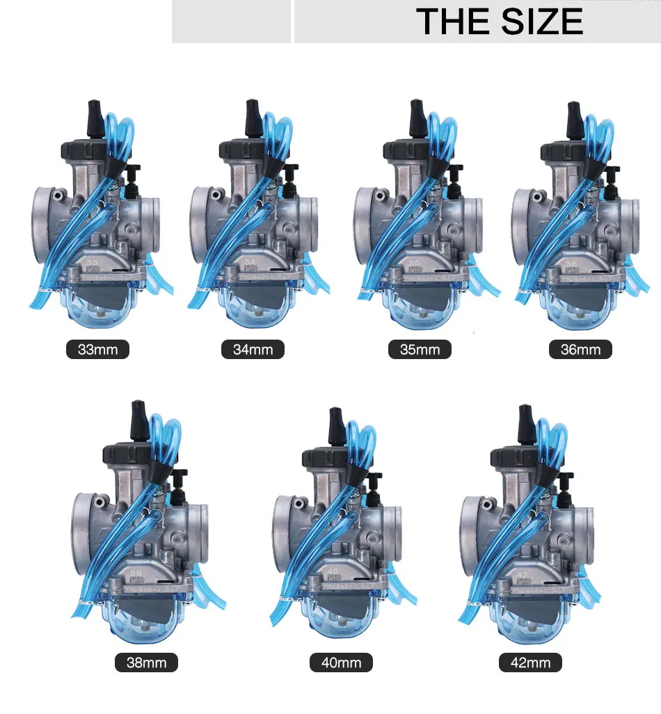 33 мм, 34 мм, 35 мм, 36 мм, 38 мм, 40 мм, 42 ммОбычно используется на двигателе мощностью 150 куб. См (250 300 350 400... Cc)