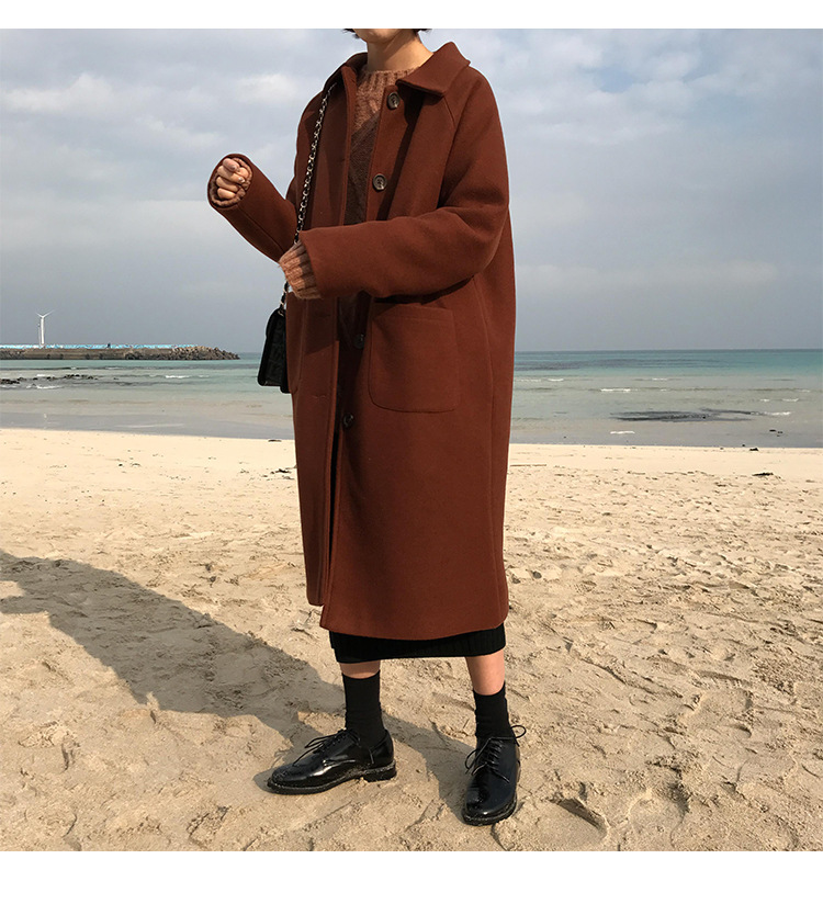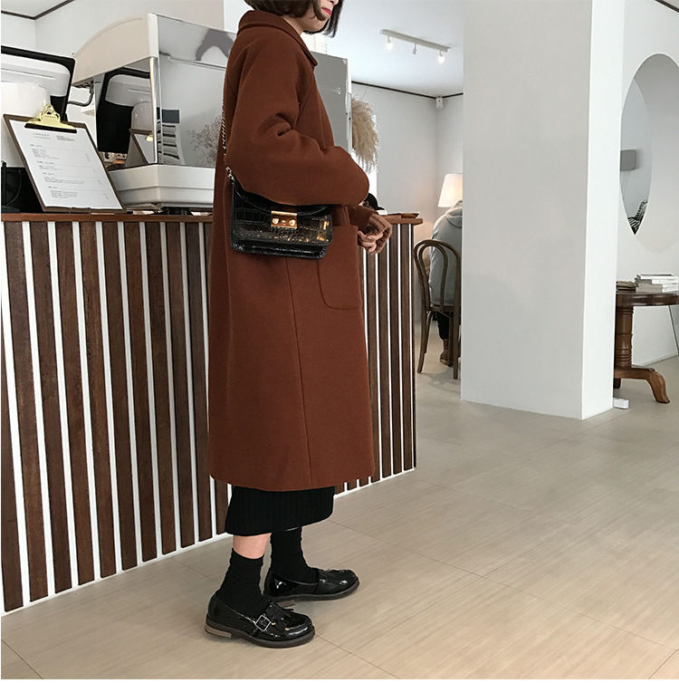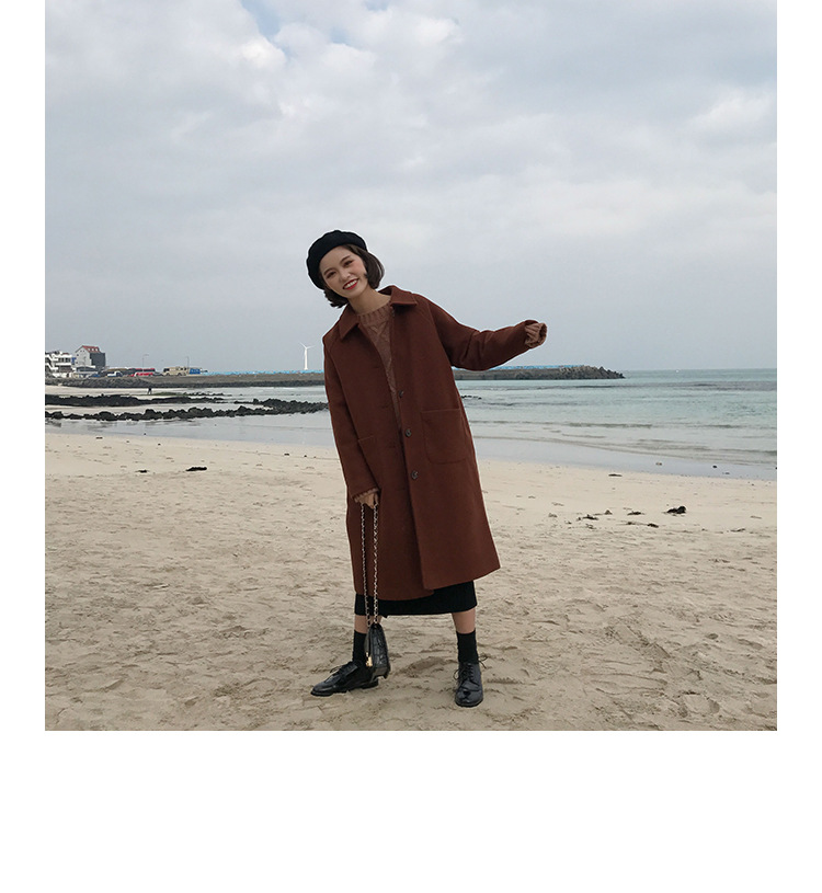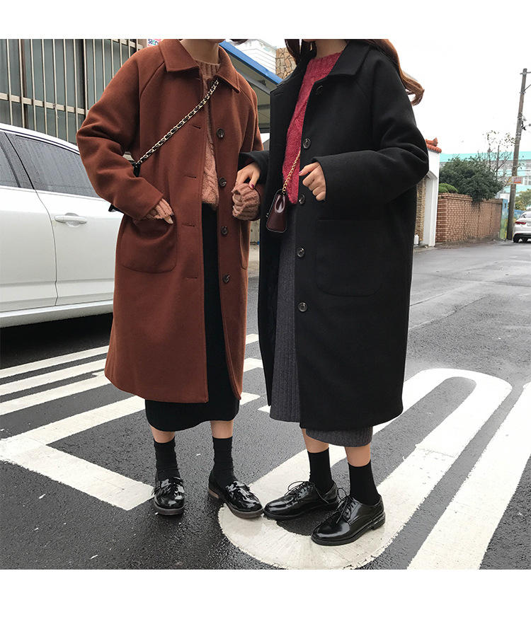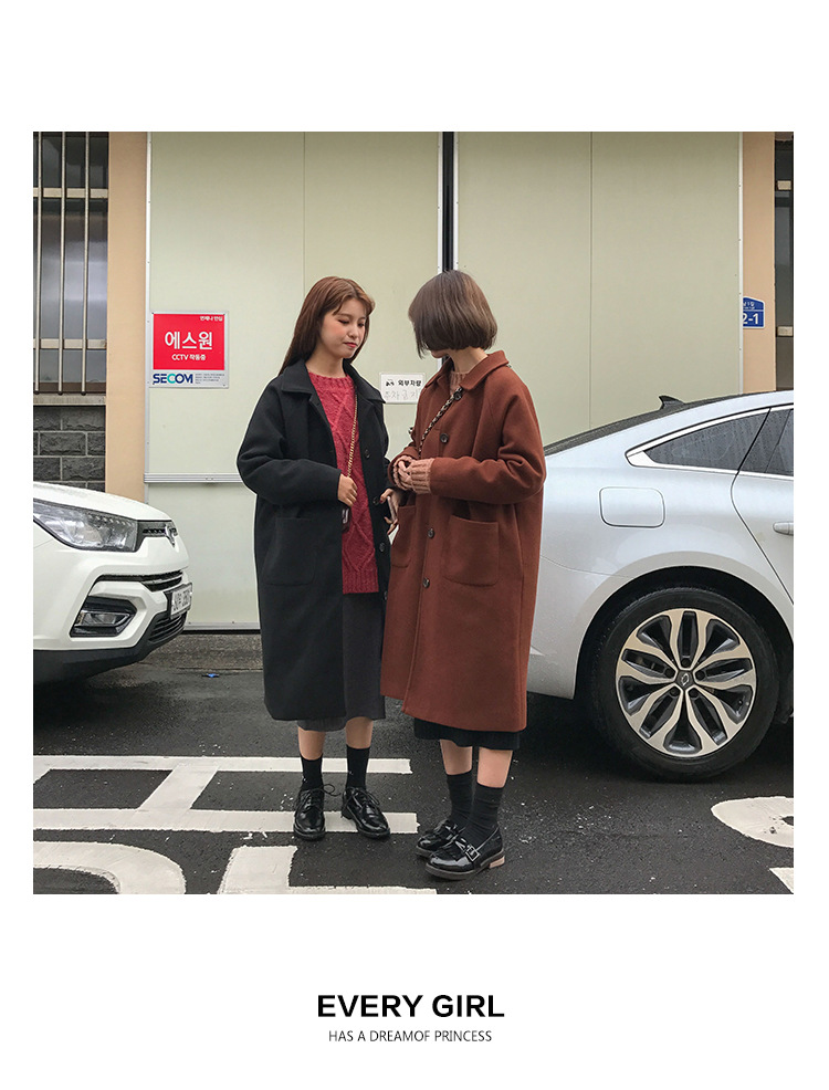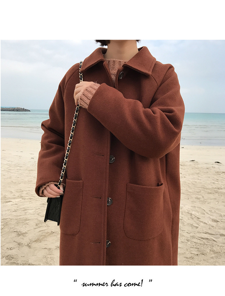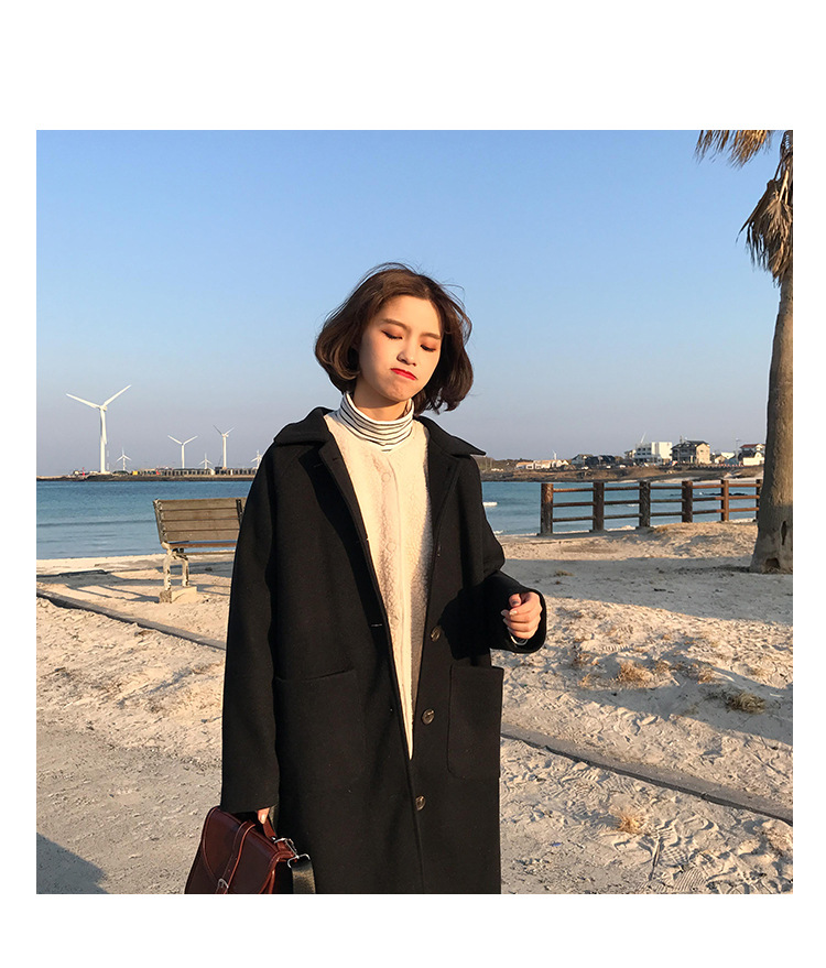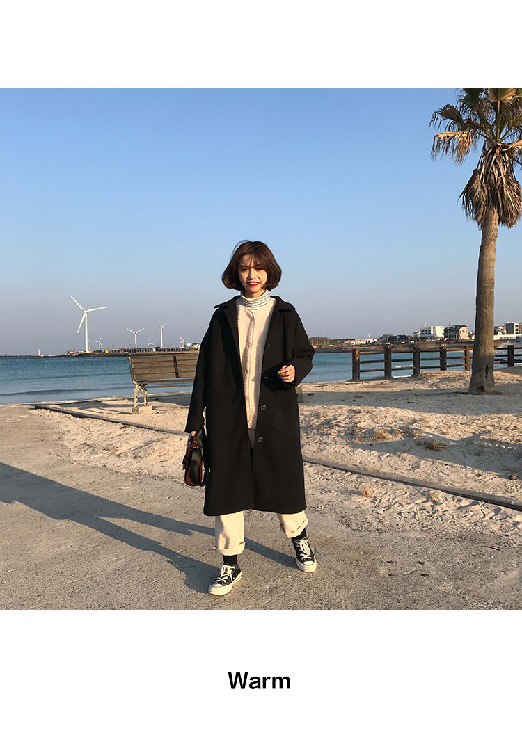 2 цвета, осеннее и зимнее корейское однобортное шерстяное пальто с карманами, шерстяные женские куртки средней длины