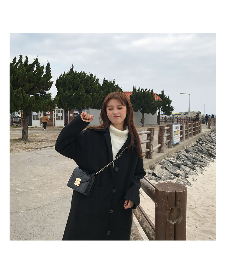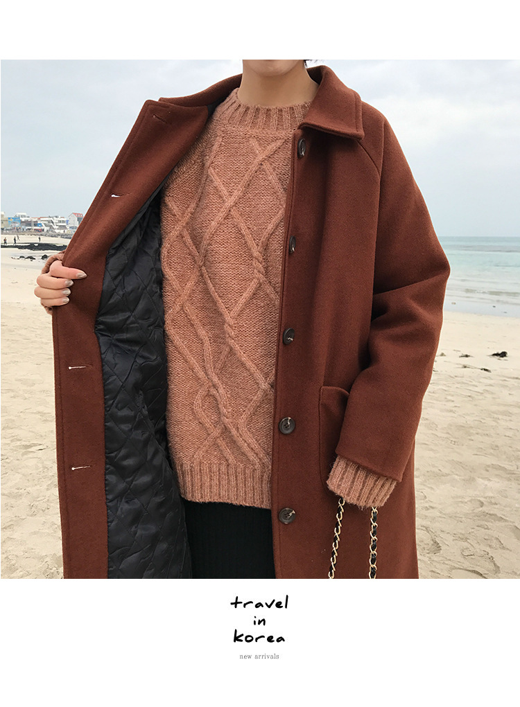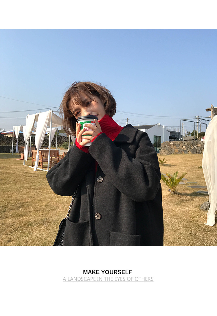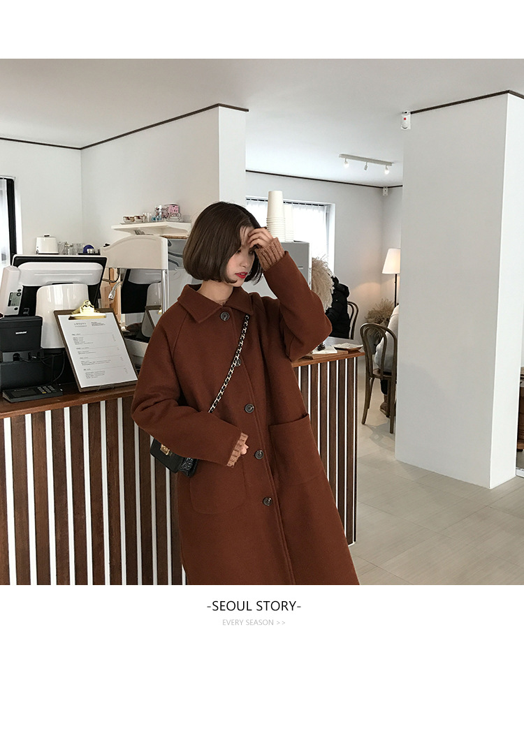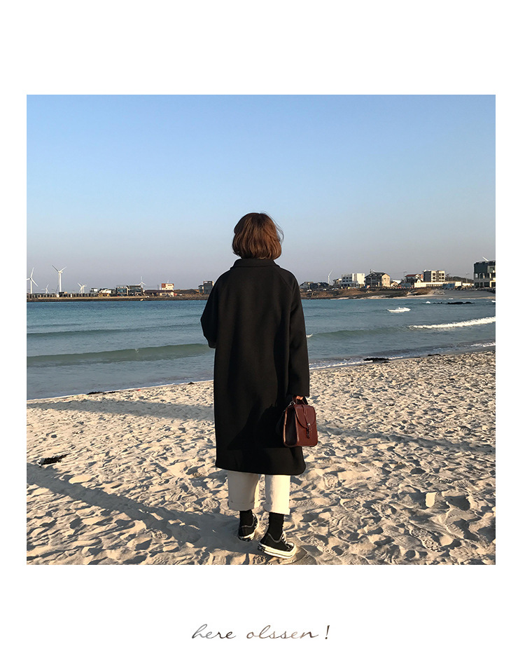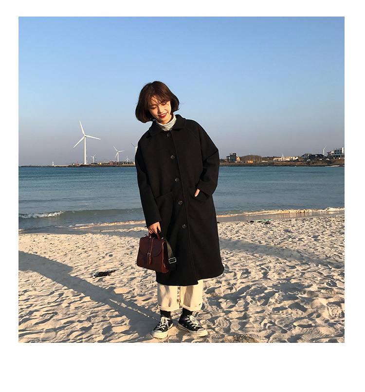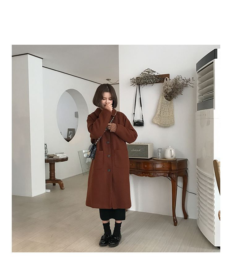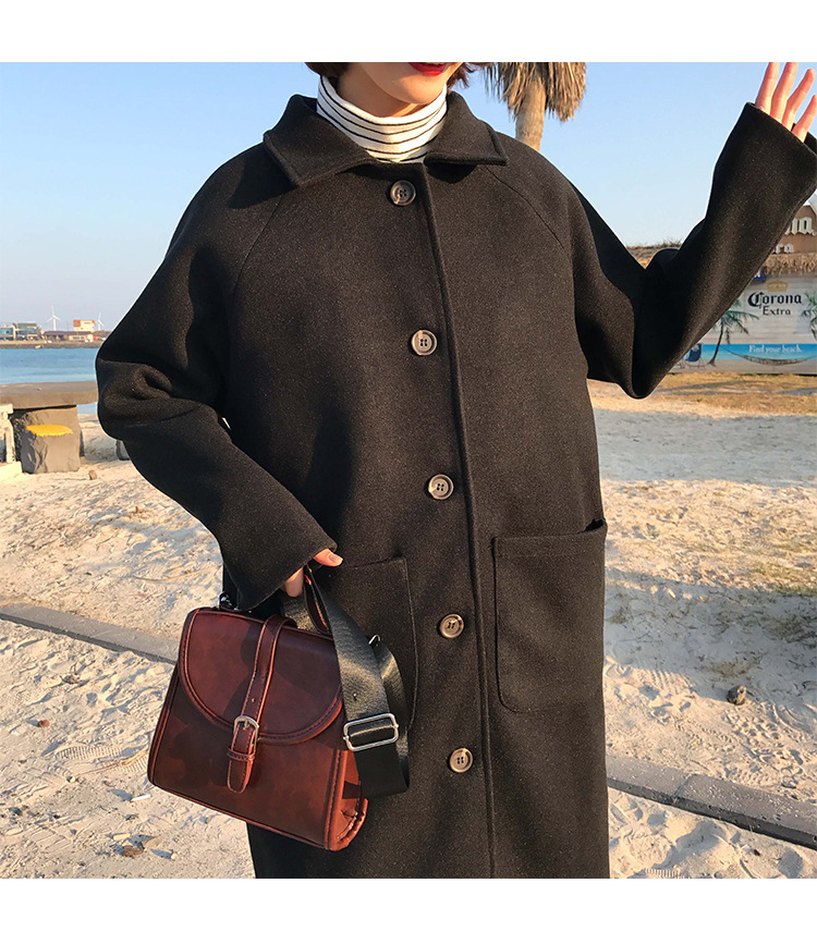 2 цвета, осеннее и зимнее корейское однобортное шерстяное пальто с карманами, шерстяные женские куртки средней длины