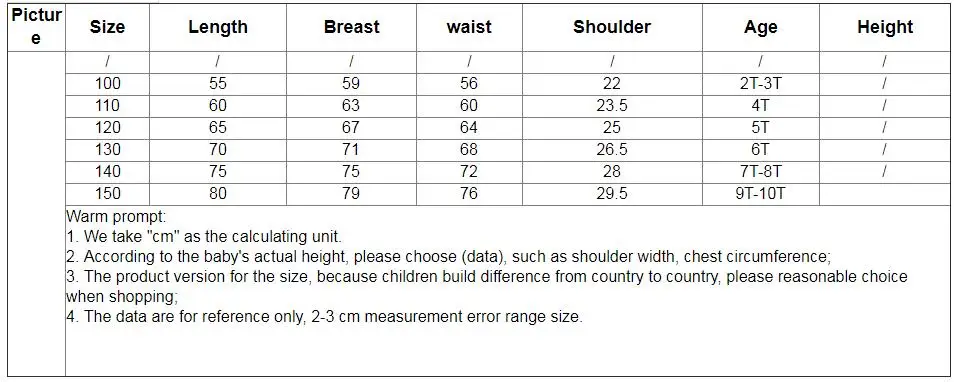 2. According to the baby's actual height, please choose (data), such as shoulder width, chest circumference; | ||||||