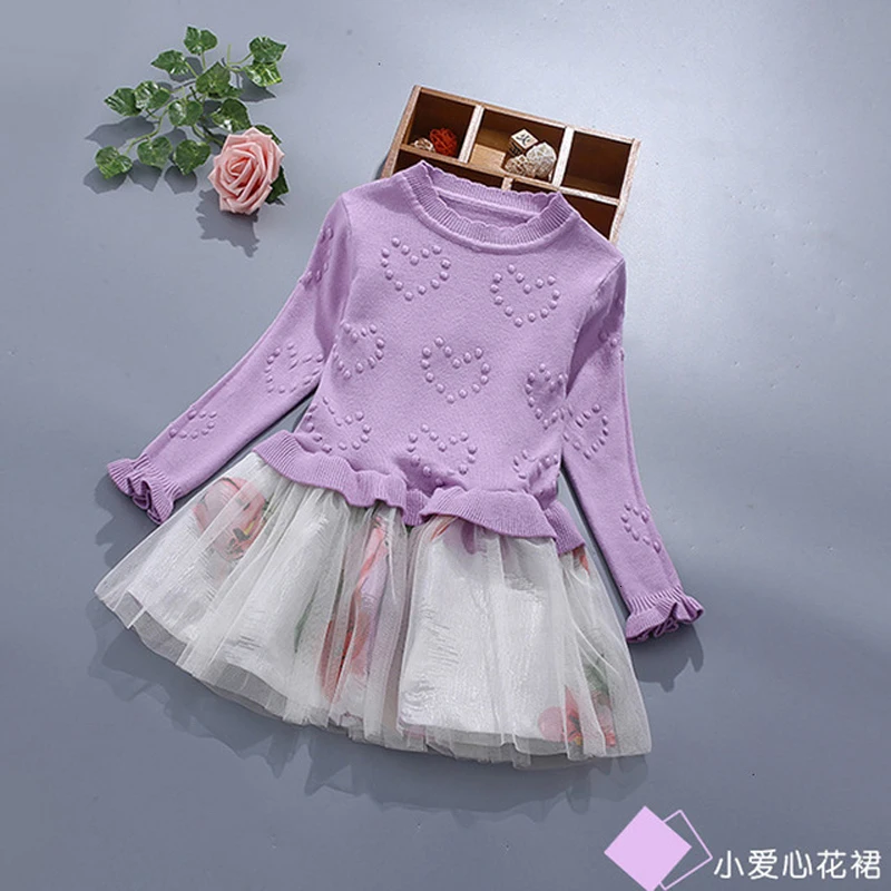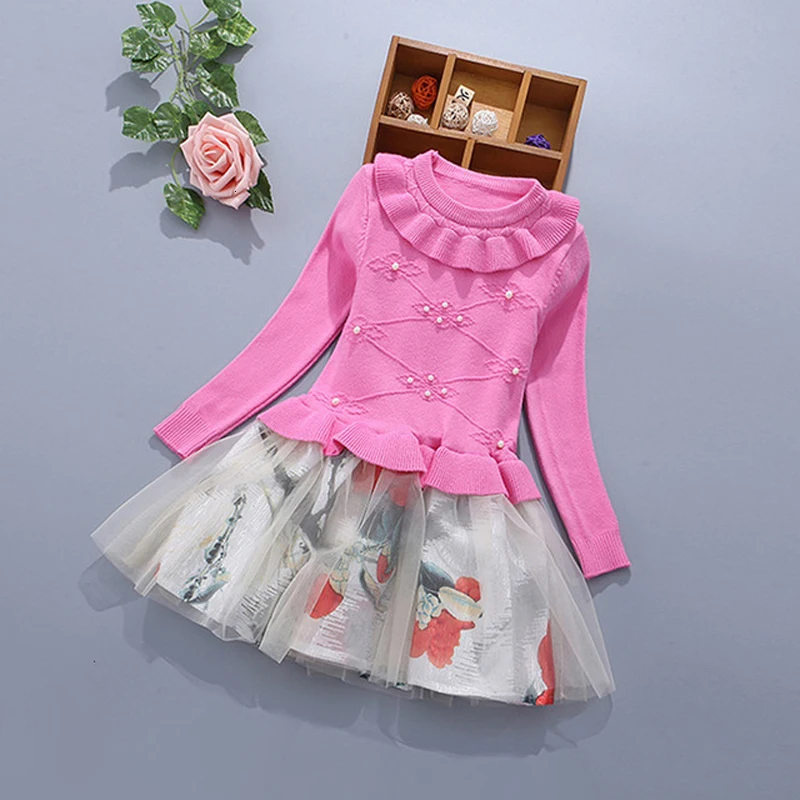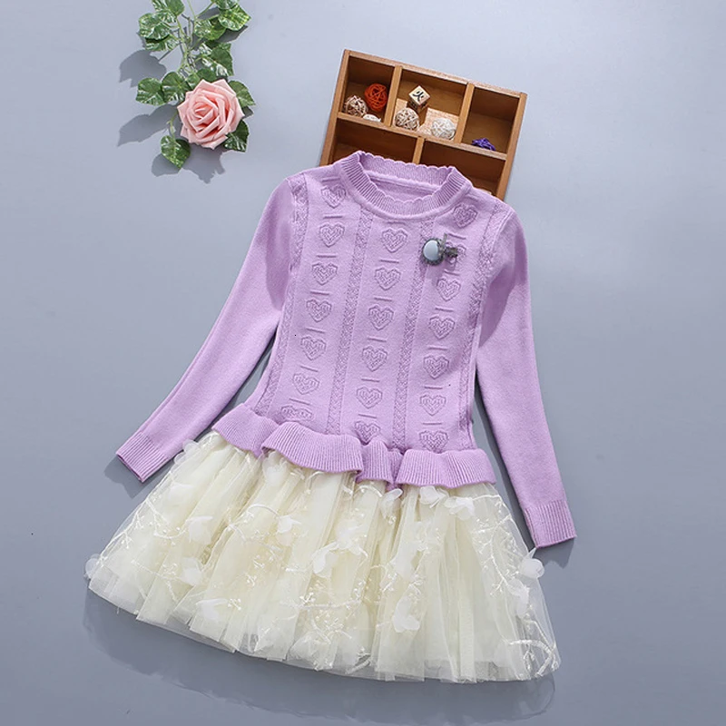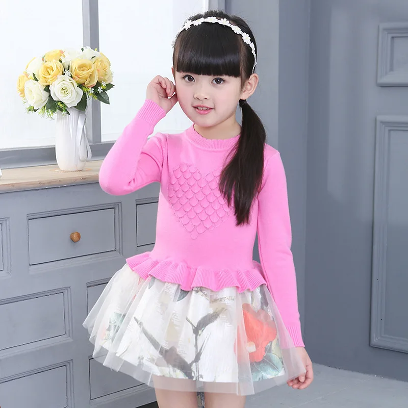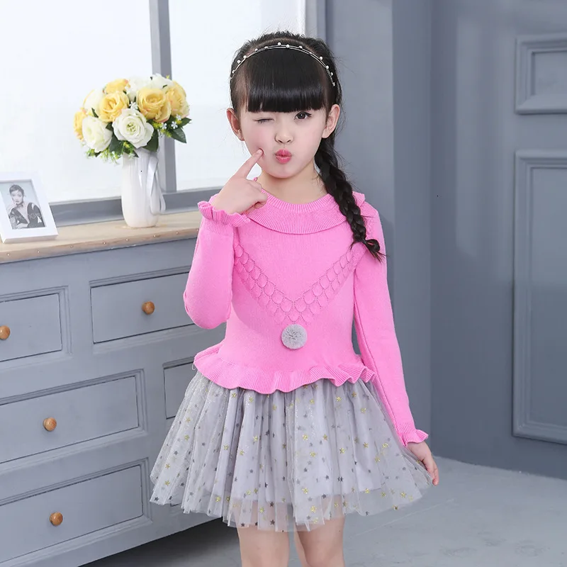 Зимнее модное платье свитер для девочек детское с геометрическим рисунком пачка