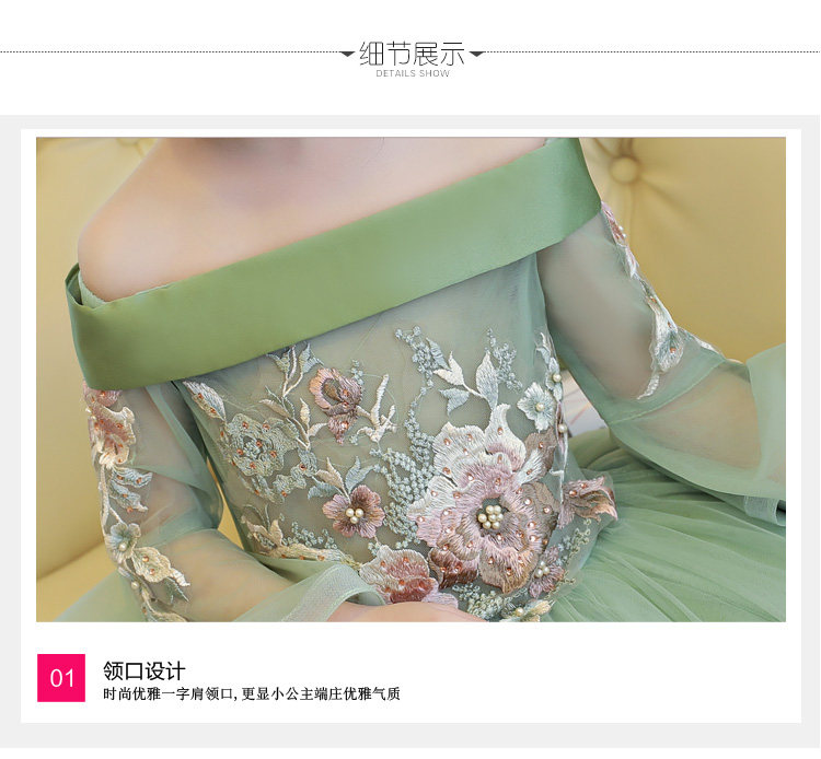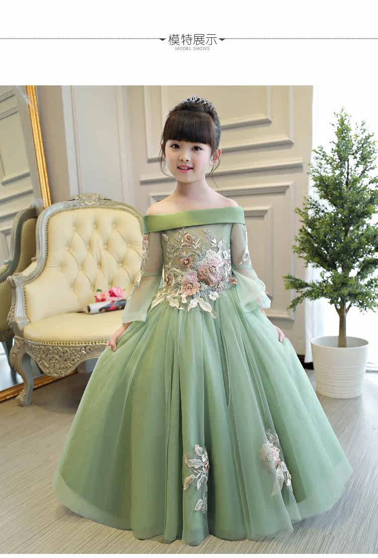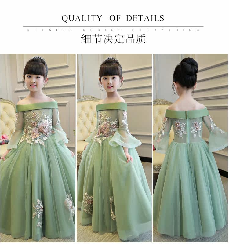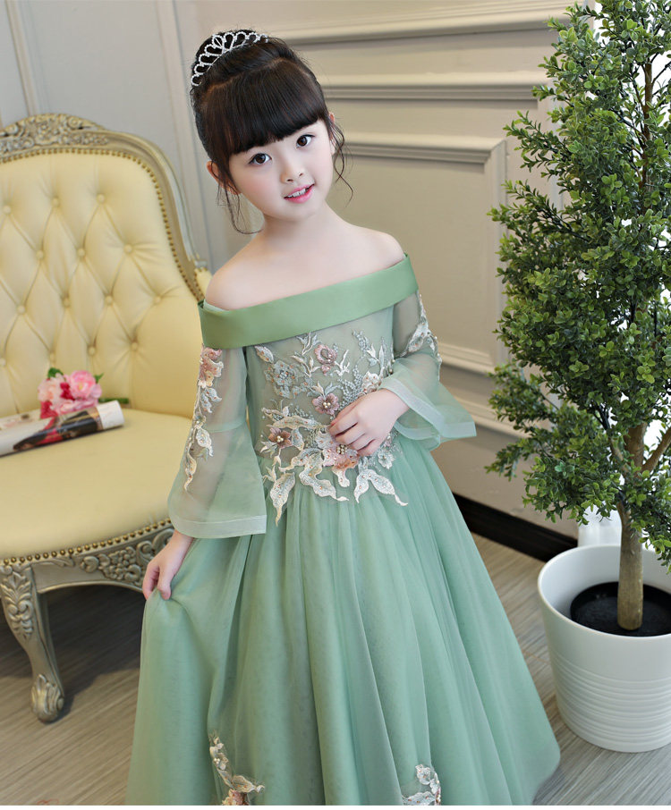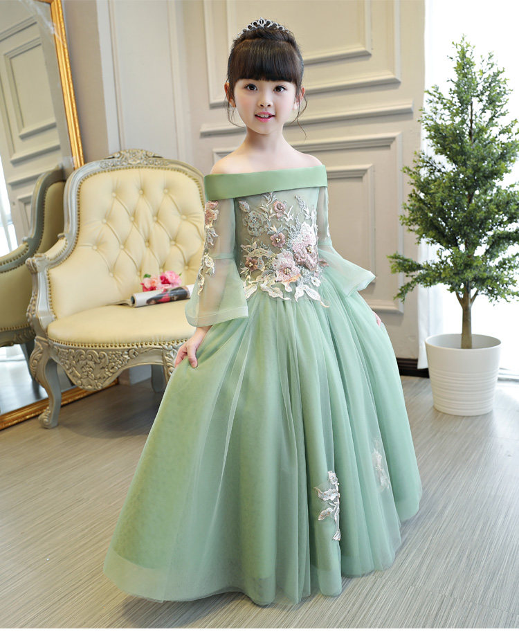 Армейское зеленое платье для девочек, винтажное платье для дня рождения с открытыми плечами, вечернее платье принцессы с цветочной вышивкой, сказочное красивое платье в пол, 2019