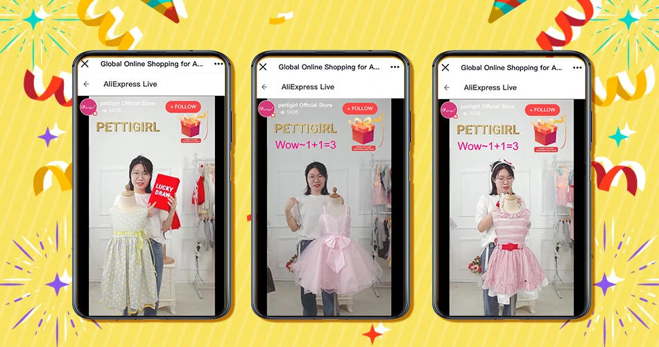 Мы будем проводить прямые трансляции каждую неделю! Который вы можете увидеть наш реальный продукт прямо с телефона! Более того, у нас есть супер benifits для вас. Вы можете смотреть наш live, чтобы выиграть Большие Купоны, код и бесплатное платье! Получите красивые платья самого низкого до $4,99 с хорошим качеством. Следуйте за нами! Мы дадим вам больше сюрприза!