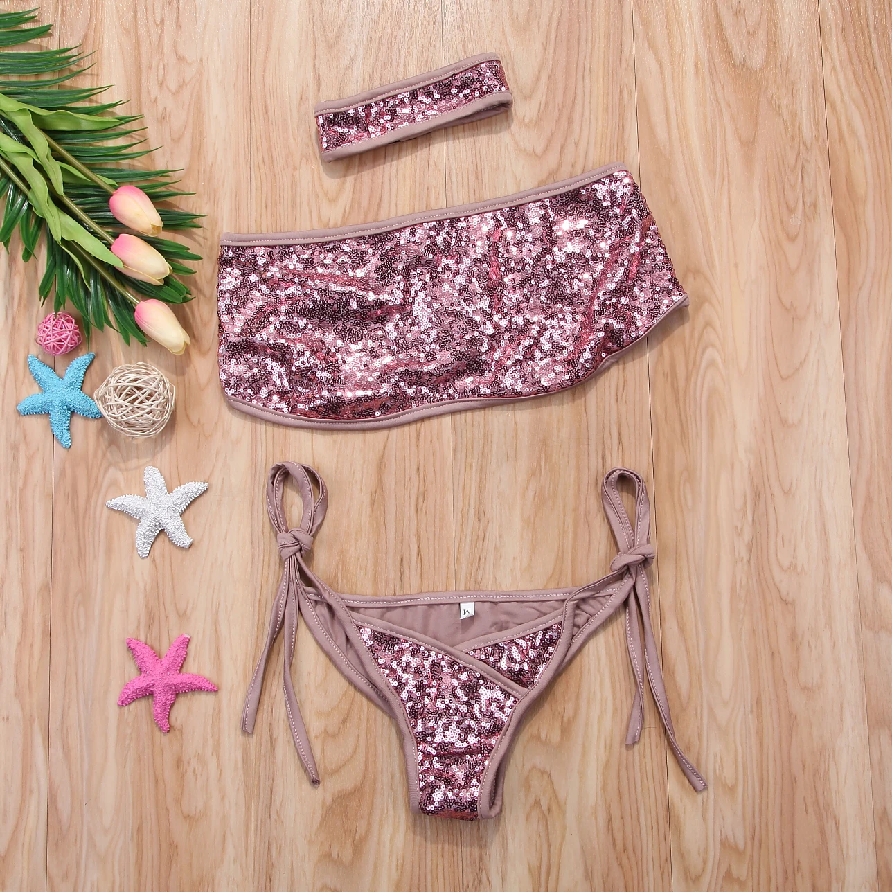 Новинка 2018, Женский комплект бикини с блестками, купальник, пуш-ап, бюстгальтер с подкладкой, без бретелек, на молнии сзади, купальные костюмы