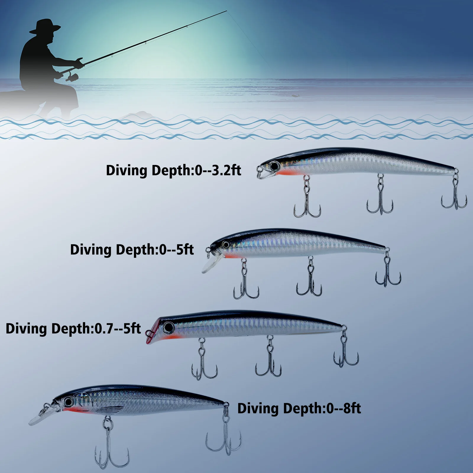 Строго подобранные цвета и дизайн для покрытия различных условий. Отлично подходит как для соленой воды, так и для пресной воды. Продуктивно при троллинге, серфинге на лосося, морской форели, полосе, мускусном и т. Д. Идеально подходит для басов, щуки, Валье и мускусного озера, пруда и реки.