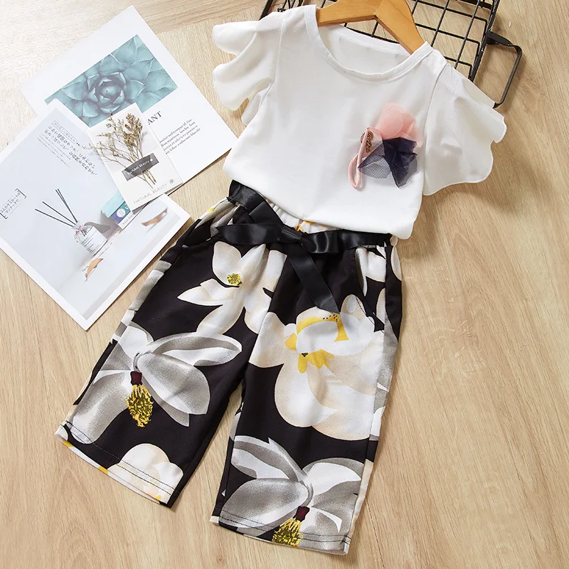Весна-Осень 2018, новые комплекты одежды для девочек-подростков, кружевная футболка с длинными рукавами + штаны, комплект из двух предметов, спортивный костюм для девочек, детская одежда