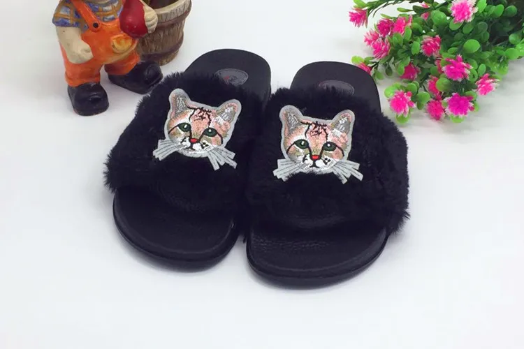Женские Оригинальные меховые шлепанцы с изображением кота; Модные домашние Шлепанцы из искусственного плюша; Женские нескользящие домашние шлепанцы; Европейские размеры 36-41; Домашние шлепанцы