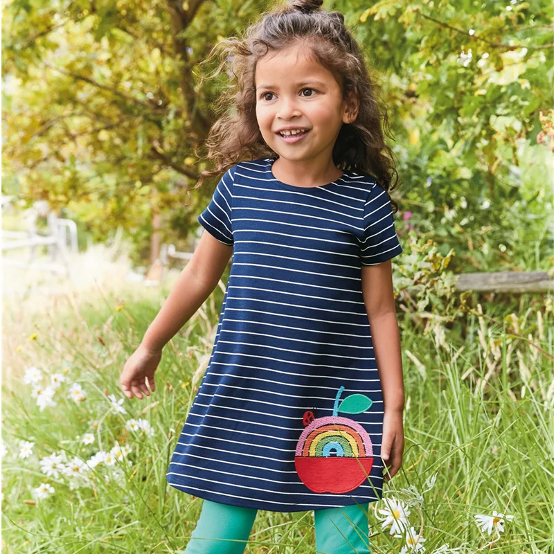 SAILEROAD 2-7Years Apple Applique Girls Dress for Summer Children Kids A-Line Dress Clothes Cotton Baby Girl's Vestido