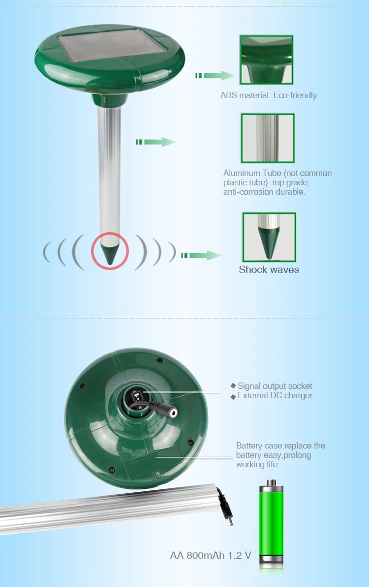 Aosion на солнечных батареях от змей Mole Pest Mouse Отпугиватель грызунов
