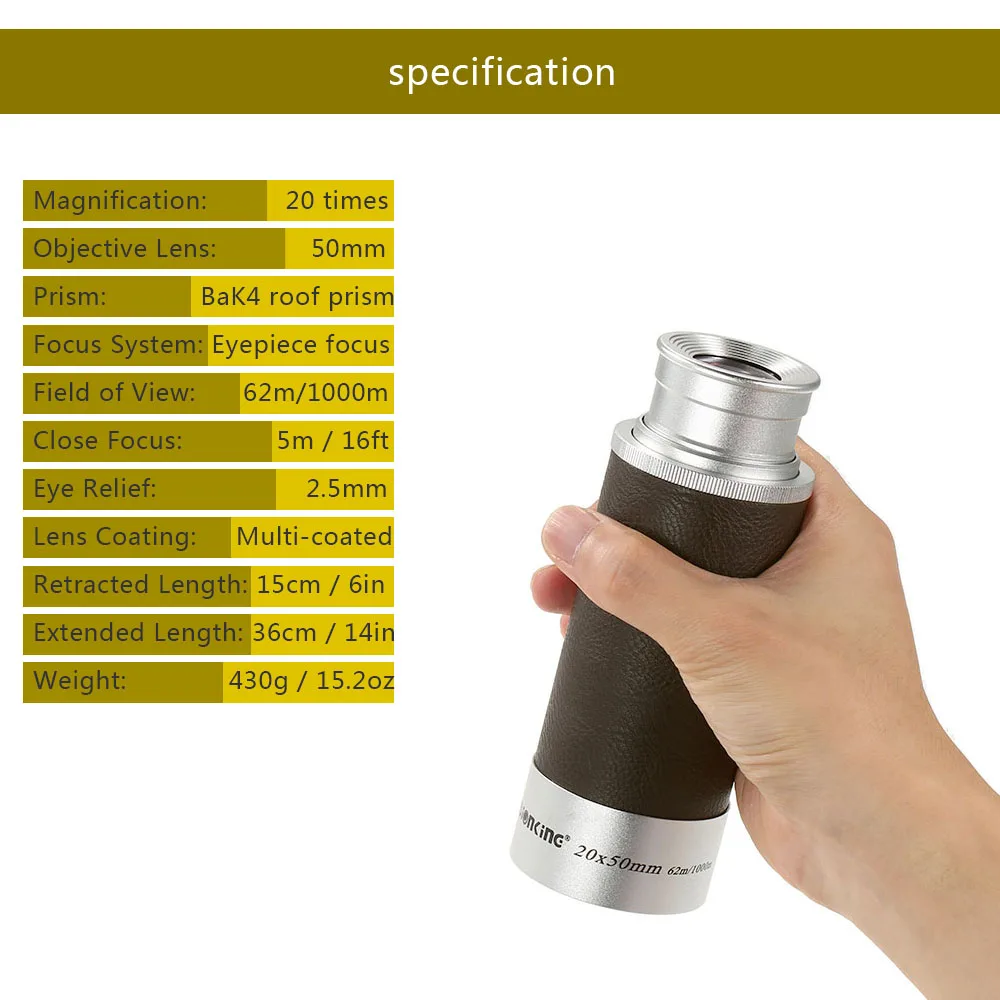 Visionking 20x50 ручной масштабируемый Монокуляр складной карманный монокулярный телескоп для путешествий с сумкой для переноски