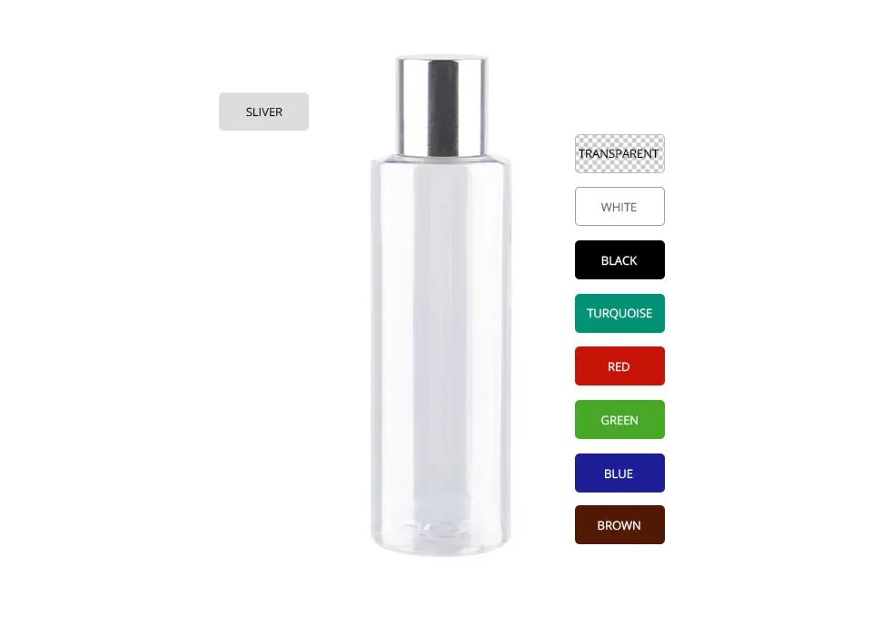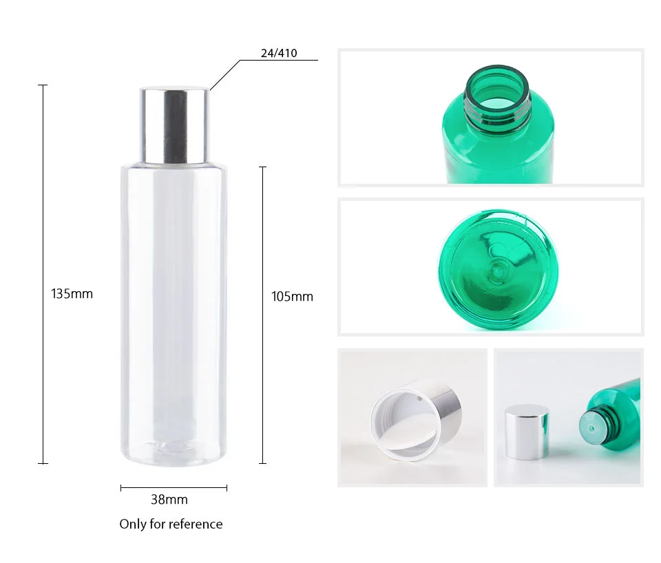 Ёмкость: 100 мл Размеры: 38x135mm Материал: ПЭТ + ПП (алюминий) Цвет: прозрачный/белый/красный/зеленый/синий/коричневый/черный/темно-зеленый + Блестящая серебряная крышка