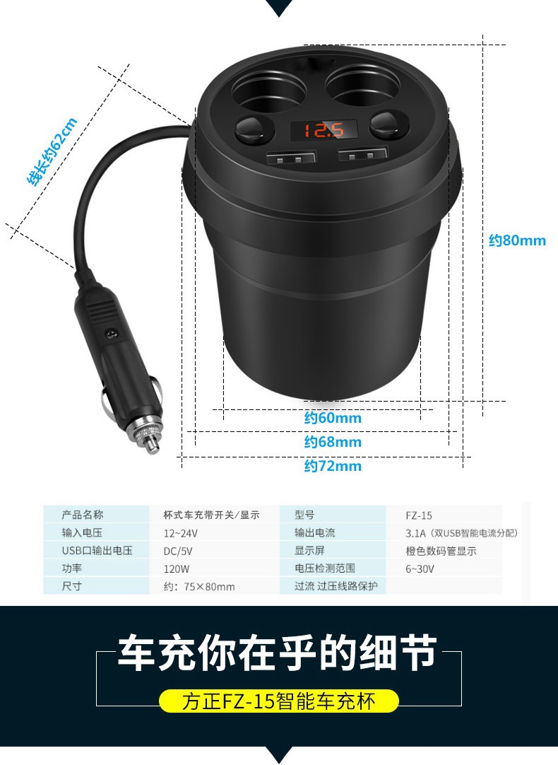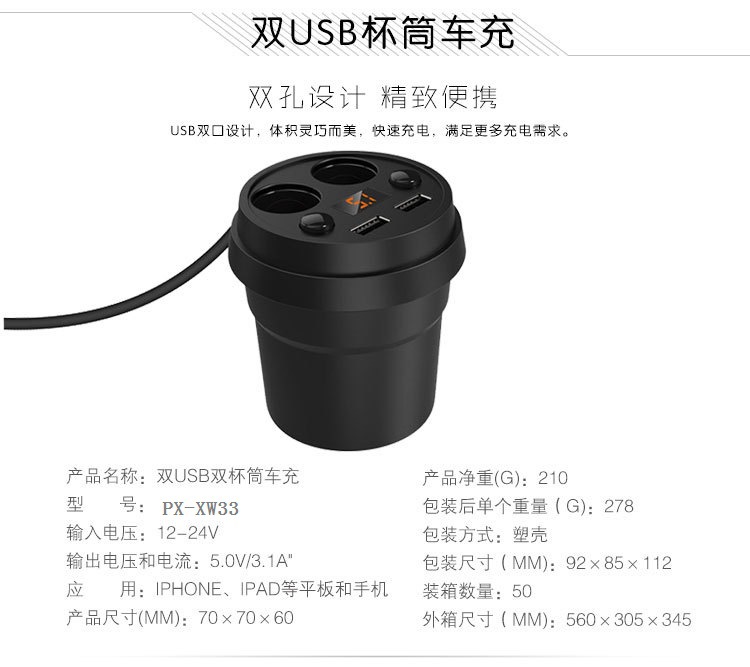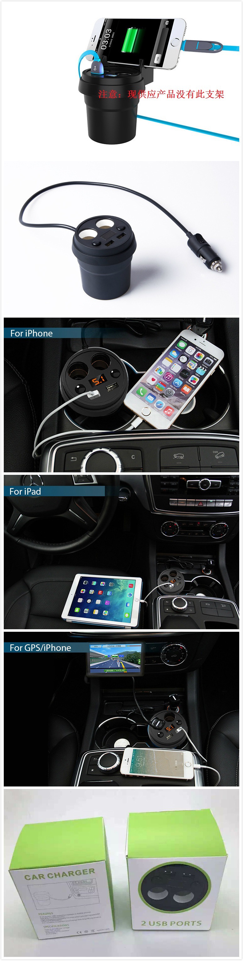 【Specifications】 1. Входное напряжение: DC12-24V 2. Выход USB: 5 В/3100 мА постоянного тока 3, вес: 224 г-252 г 4, размер: 79*60*60 мм 【Особенности 】: 1. Автомобильное зарядное устройство для двойного usb-порта, выберите подходящее оборудование для зарядки. 2. Вставьте usb-разъем для автомобильного зарядного устройства в прикуриватель автомобиля, а светодиодный индикатор загорится красным цветом. 3. Подключите usb-кабель к выходу автомобильного зарядного устройства, а затем подключите соответствующий разъем к устройству питания (например, мобильный телефон, MP3, серия камер и т. д.) для источника питания или зарядки. Например, продукты iPod Iphone используют разъемы IPOD с кабелем. 4. После полной зарядки устройства, пожалуйста, вытащите автомобильное зарядное устройство из автомобильного прикуривателя 【Область применения 】: 1, адаптирован для Apple, IPAD, iPhone, iPhone 3G, 3GS, PDA.I9000 DEFY и т. Д. 2, подходит для gps-навигации, планшетных ПК, мобильных телефонов, MP3, PDA, Bluetooth гарнитуры, смартфонов, цифровой камеры зарядки ....