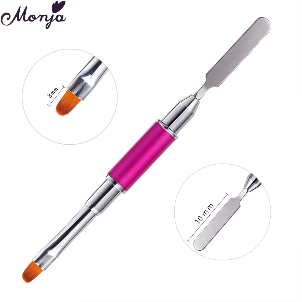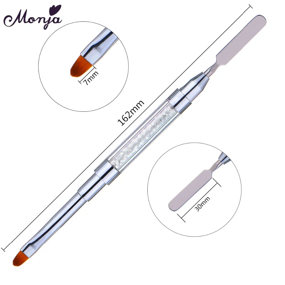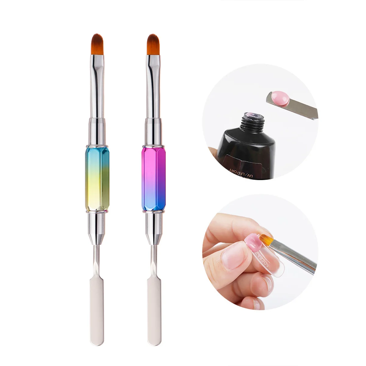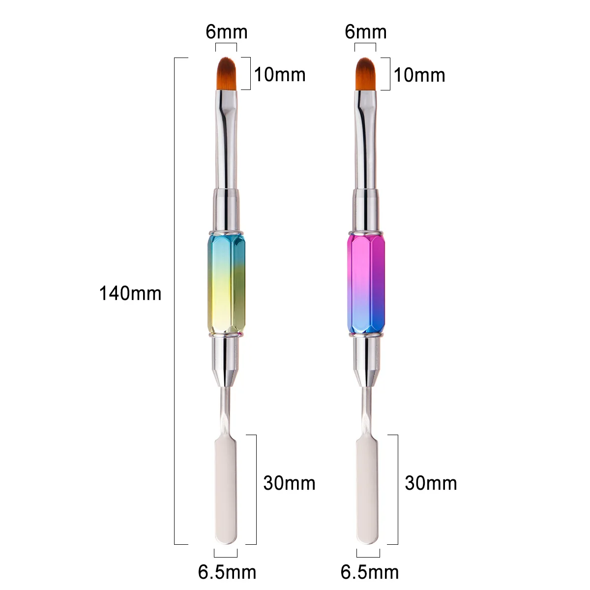 Двойной дизайн для использования с УФ-гелем, чтобы лепить накладные гелевые ногти или удлинительные гелевые наконечники. Наконечник из нержавеющей стали состоит в том, чтобы подобрать УФ-гель, тонгулированную гелевую щетку, чтобы смешать гель для формирования кончиков ногтей.