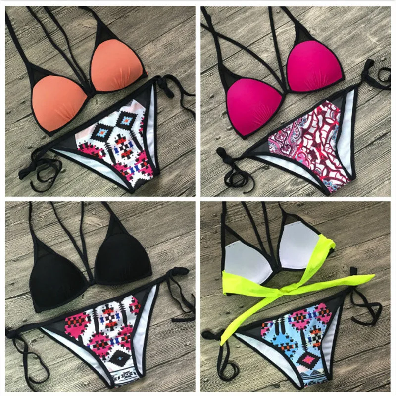 Горячая Распродажа, сексуальный бразильский комплект бикини из 2 предметов, бикини с низкой талией, купальный костюм с подкладкой, многоцветный женский купальник, пляжный купальник с завязками