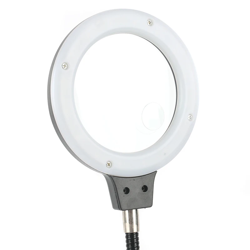Особенности: Поставляется с 16 светодиодами SMD, Энергосбережение и супер яркий. Лупа на гибкой шее, что дает Вы 2.5X(6D) и 6.25X(21D) увеличение Для завершения этих тонких паяльных соединений. Регулируемая функция 3 зажимов для рук Точное позиционирование и надежное захват Ваша работа. Лупа питается от 2 шт. AAA Батареи или внешний адаптер питания. В комплект входят скобы для припоя, Держатель паяльника, Чистящая губка, Латунь наконечник очиститель и Soder флюс Увеличительная линза s Размер: ψ90 мм и 2020 мм Увеличение: 2,5x/6,25 x Материал увеличения: акрил Светильник источник: 16 шт SMD светодиодов Длина шеи (для лупы):265 мм Длина шеи (для зажимов типа «крокодил»): 250 мм Базовый размер: 185x170мм Мощность Батарея: 1,5 V AAA x 2 шт. батареи (не прилагаются) Адаптер питания: 6 В постоянного тока 0.5A вход адаптера (не входит в комплект) Аксессуары: размер губки 30x50 мм паяльный флюс 10 г латунный наконечник очиститель 17 г (не входит в комплект) Вес 1150 г Индивидуальная Упаковка: цветная коробка Как использовать: Выньте лампу из упаковки и поместите ее на ровную поверхность. Отрегулируйте держатель лампы и световой рычаг по желанию. Вставьте 2 батарейки AAA или установите адаптер питания, чтобы включить устройство. Для использования вне досягаемости розетки устройство также может питаться от 2 * AAA батарей Включите светодиодный светильник, затем начните работу. Посылка включает в себя: 1x увеличительное стекло 1x Подставка-Держатель 1x USB кабель питания
