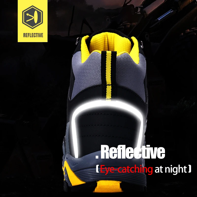 Кожаные мужские ботинки зимняя обувь ботильоны рабочие для снега со стальным