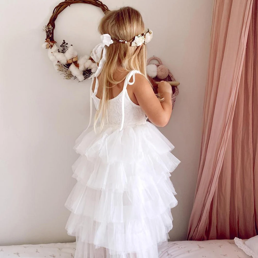 Продукты | Кружевное платье с длинными рукавами и открытой спиной для девочек |